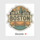 Show your love for Beantown with this classic vintage travel badge! The artwork features a geometric, retro-style emblem showcasing the iconic Boston skyline, including the Custom House Tower and Faneuil Hall. Below the bold "BOSTON" banner spans the majestic Leonard P. Zakim Bunker Hill Memorial Bridge crossing over the Charles River. Rendered in a stylish palette of muted teal, rust, and cream, this design is a perfect souvenir for anyone who loves the history and charm of New England.
