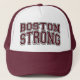 A Boston Strong remembrance college style decor on a custom truckers hat for yourself or for someone special on your list.