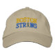 A Boston Strong commemorative embroidery headliner ribbon style on a custom casual embroidered baseball cap gift idea.