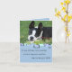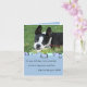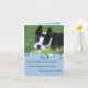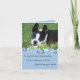 An adorable photograph of a Boston Terrier adorns the front of this card. A blue background with a retro design and text that reads: "On your birthday try to remember: A smile is happiness you'll find right under your nose" Inside customisable text reads: "No Birthday card holds more love than this 'cause it's mailed with a hug and it's sealed with a kiss!".