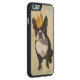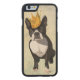 Boston Terrier and Crown Carved Wood iPhone Case