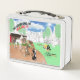 This is a standard metal lunchbox that appears to work just fine. We designed this box ourselves with an uploaded photo and custom text on the front and back. It looks absolutely beautiful except the front of the lunchbox is not centered like it shows in the photo. The print borders don't align with the inset flat part of the box where the preview photo online showed it perfectly centered in there. The back looks nice and centered though.