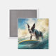 Boston Terrier Beach Surfing Painting Magnet