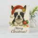 Features a happy, wide-eyed Boston Terrier in a Santa hat