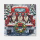 Bring dapper, friendly charm to your holiday season with this adorable Boston Terrier Christmas design! This festive scene features three alert, tuxedo-coated Boston Terriers sitting contentedly in the back of a classic red pickup truck, nestled in a picturesque snowy winter forest. The vintage truck is adorned with a vibrant Christmas wreath, twinkling with red and gold ornaments and warm, glowing lights. Soft snowflakes gently fall, enhancing the winter wonderland effect. A decorated Christmas tree in the background completes this heartwarming picture, making it an ideal Christmas gift for any Boston Terrier owner, dog lover, or admirer of festive and beloved dog art. This design perfectly captures the joyful spirit of the holidays.