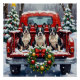 Bring dapper, friendly charm to your holiday season with this adorable Boston Terrier Christmas design! This festive scene features three alert, tuxedo-coated Boston Terriers sitting contentedly in the back of a classic red pickup truck, nestled in a picturesque snowy winter forest. The vintage truck is adorned with a vibrant Christmas wreath, twinkling with red and gold ornaments and warm, glowing lights. Soft snowflakes gently fall, enhancing the winter wonderland effect. A decorated Christmas tree in the background completes this heartwarming picture, making it an ideal Christmas gift for any Boston Terrier owner, dog lover, or admirer of festive and beloved dog art. This design perfectly captures the joyful spirit of the holidays.