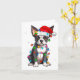 Boston Terrier Christmas Santa Hat Tree Lights Paj Card