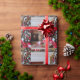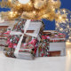 Boston Terrier looks up at the Christmas tree possibly contemplating mischief cute dog lovers wrapping paper for the holidays