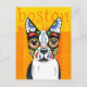 Original artwork postcard of an adorable Boston terrier with a Boston background for Day of the Dead.