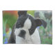 A young cute Boston Terrier female puppy, black with white markings, in a flowery garden. Boston Terriers, also called Boston Bulls or "American Gentlemen", are a gentle, friendly and intelligent dog breed for companionship. A puppy-eyed doggy photo taken by Katho Menden, this soft and cosy pillowcase is an enchanting gift idea for dog and pet lovers. http://www.zazzle.com/kathom_photo