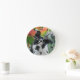 A young cute Boston Terrier female puppy, black with white markings, in a flowery garden. Boston Terriers, also called Boston Bulls or "American Gentlemen", are a gentle, friendly and intelligent dog breed for companionship. A puppy-eyed doggy photo taken by Katho Menden, this wall clock with dial-plate is a gift idea for dog and pet lovers.