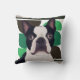 Boston Terrier Dog – Dark Green Geometric Cushion