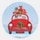 Boston Terrier Dog In Car With Santa Claus Classic Round Sticker