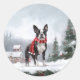 Boston Terrier Dog in Snow Christmas Classic Round Sticker