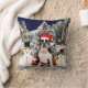 Boston Terrier Dog in Snow Christmas Hat Lights Cushion