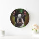 Boston Terrier dog in St. Patrick's Day Dress Large Clock