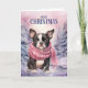 Boston Terrier Dog Merry Christmas Pink Forest Holiday Card