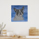 Pet portrait of a cute Boston terrier dog with a blue sky and clouds background. Thanks for viewing my designs.