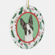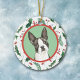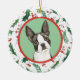 Boston Terrier Dog Red Berry Holly Border Ceramic Tree Decoration