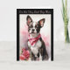 This cute card for the Boston Terrier Mum or Dad makes a great Valentine's Day card, but can also be used for a birthday or any other special occasion. All the text is easily changed to anything that you'd like. The front has an image of a gorgeous black and white Boston Terrier Dog wearing a pink scarf, and with pink roses beside him. The inside currently says "You make my tail WAG".