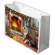 Boston Terrier Fireplace with Christmas Lights Large Gift Bag