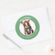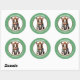 An image of an adorable Boston Terrier dog wearing a winter sweater and hat is at the centre of this Holiday sticker. The image is framed in a circular green border which contains your custom text in white. Cute for Christmas cards, correspondence, and gift packages.