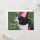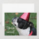 Cute Boston terrier wearing red party hat - text can be added to front and back of card as you like.