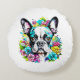 Cute Boston Terrier Dog surrounded by pink, yellow and blue flowers. Ai art. Cute gift for Boston Terrier owners. Boston Mum. Paw print.