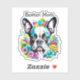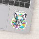 Cute Boston Terrier Dog surrounded by pink, yellow and blue flowers. Ai art. Cute gift for Boston Terrier owners.
