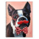 Boston Terrier Portrait with Red Bow Tie and 3 Notebook