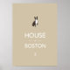 Poster print illustration of a Boston Terrier puppy dog. The artwork is from a hand drawing, to retain a traditional appearance, then scanned into the computer to create a modern piece of digital art.