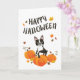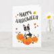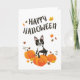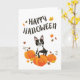 Boston Terrier Pumpkin Fall Leaves Halloween Card