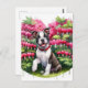 Boston Terrier Puppy Bleeding Heart Flowers Postcard
