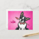 Cute dog art postcards you may customise with a personal message! Features an original illustration by Andie of Off-Leash Art of the favourite Boston Terrier dog breed.