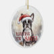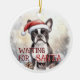 Boston Terrier Waiting For Santa Snowy Christmas Ceramic Tree Decoration