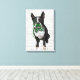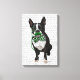 Boston Terrier With Green Moustache & Spotted Tie Canvas Print