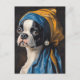A funny Boston Terrier in a pearl earring fine art parody AI generated art