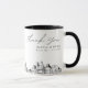 Boston skyline coffee mug favour gift with "thank you" script. The design showcases a stunning sketch with the ability to customise your names and exact location. Enter the Zazzle design tool for additional customisations.