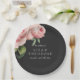 This Stunning wedding paper plates featuring a vintage illustration of pink rose over a modern grey background.