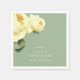 Stunning wedding napkins featuring a vintage illustration of yellow rose over a sage background.