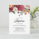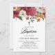 Invite family and friends to your event with this whimsical and botanical baptism invitation. It features white, red, purple, blush and orange amaryllis, peonies, mums, ranunculus and chrysanthemum with a matching floral pattern. The colours are perfect for fall and Christmas baptisms. Personalise by adding event, names, date, time, venue and other details.