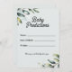 Add a touch of fresh greenery and timeless charm to your baby shower with this botanical baby predictions game card, designed with modern simplicity in mind. Featuring elegant watercolor eucalyptus branches and soft olive tones on a clean white background, this design exudes natural beauty and calm sophistication. It's the perfect activity to engage your guests and capture their sweet hopes and guesses for baby’s arrival.