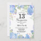 Botanical Blue Floral Surprise 13th Birthday Invitation
