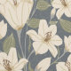 Botanical Blue Grey Beige Lily Floral Pattern Wallpaper