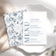 Enhance the charm of your romantic modern wedding celebration with this sophisticated and polished menu card. Featuring an intricate pattern adorned with delicate dusty blue and grey flower blooms, this beautiful design is elevated with personalisation, showcasing the names of the bride and groom on the back.
