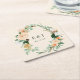 Beautiful wedding paper coasters to complete your decor and share your special day with your guests. These classic custom printed drink coasters are perfect to decorate your reception or ceremony space and delight your guests with thank you party gifts, sweets, and treats. Soft pastel tones and greenery modern watercolor florals in shades of peach, white, cream ivory, sage and a brighter deeper green. This personalised event supplies accessory coordinates with our full botanical boho floral collection of stationery and event paper goods.