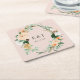 Botanical Boho Floral Greenery Monogram Wedding Square Paper Coaster