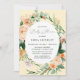 Beautiful baby shower invitations featuring an elegant modern neutral pastel tone watercolor botanical floral greenery frame in soft earth tones of peach, orange, soft blush, yellows, and lots of shades of green from sage green to bright and deeper greens. Your personalised details are displayed in an elevated typography layout that puts the guest of honour front and centre.