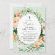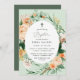 Beautiful baptism christening invitations featuring an elegant modern neutral pastel tone watercolor botanical floral greenery frame in soft earth tones of peach, orange, soft blush, yellows, and lots of shades of green from sage green to bright and deeper greens. Your personalised details are displayed in an elevated typography layout that puts the sweet baby girl front and centre.