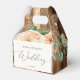 Beautiful wedding gable favour boxes decor to share your special day with your guests. These classic custom printed treat boxes are perfect to decorate your reception or ceremony space and delight your guests with thank you party gifts, sweets, and treats. Soft pastel tones and greenery modern watercolor florals in shades of peach, white, cream ivory, sage and a brighter deeper green. This personalised event supplies accessory coordinates with our full botanical boho floral collection of stationery and event paper goods.